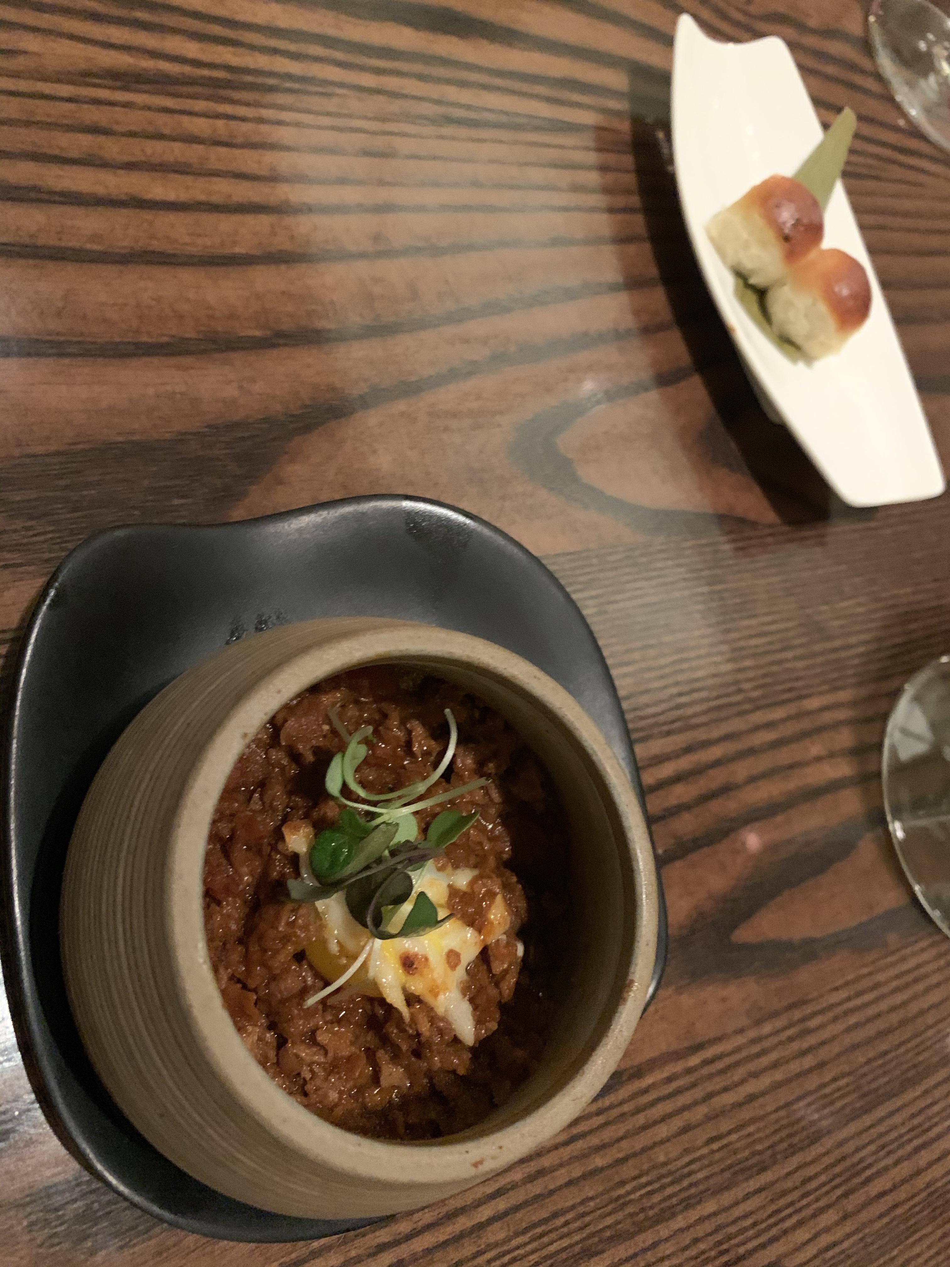 Course 5: Soy kheema pav with quail egg